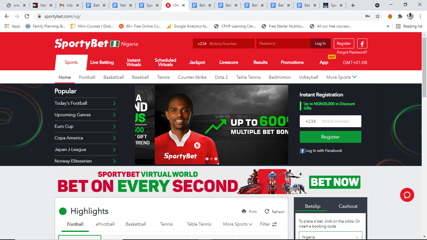 Incentives and codes supplied by SportyBet Online casino